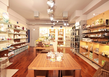 Una parte espositiva accessibile da ogni punto di vista, dove incontrare le novità, cercare idee regalo, sfogliare un libro o degustarsi un dolcetto preparato nella cucina allestita al centro del negozio.